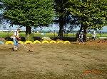 今日は、閉会式の練習をしました。最後の種目「全校大玉転がし」が終わったところから、閉会式の隊形に整列します。