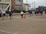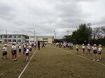 体があたたまったら、いよいよスタートです。校庭のトラックを1・2年生、3・4年生、5・6年生でコースを分けて走ります。