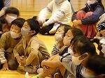 おじいさんが小づちをふるところでは、キラキラした小判が出てきてみんなびっくりしました。最後に、みんなで「おむすびころりん。すっとんとん。」と手拍子に合わせて声をそろえて大成功でした。公演は火、水曜日もあるので楽しみです。