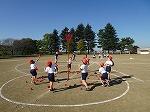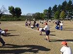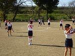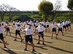 まず、体育委員の子どもたちの号令で、みんな一緒に準備運動をしました。