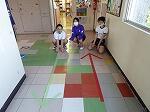 5年生の提案は、他にも「廊下は右側を歩くようにしよう。」があります。さっそく、気をつけたい場所として、図書室の前、1階から2階への階段の廊下に矢印をつけたり、ポスターを貼ったりすることができました。