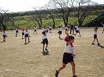 2時間目は、3・4年生が「デカバトンレース」の練習をしました。2mもある大きなバトンを二人一組で運び、リレーします。ルールや作戦について話し合うともできました。