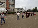 1時間目には、1~3年生が、ダンスの練習をしました。今日は本番と同じようにバンダナをつけ、手には炎をイメージしたボンボンを持ちました。