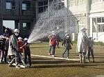 次に、放水の体験を実際にさせてもらえました。2種類のホースで、消防団の方と一緒に放水することができました。