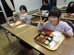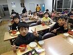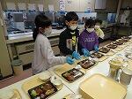 夕食は、自然の家で個別におかずが用意されていました。ごはんや汁物は、取り分けておかわりもできるようにしてあります。配膳は、先生と食事係の子どもたちがしてくれました。みんなおいしそうに食べていました。