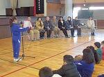 1月28日(月)に藤岡二中生と先生方が朝早くから来校し、今年度3回目のあいさつ運動をしてくださいました。部屋小学校の児童は、藤二中生のあいさつ運動にも慣れてきた様子で、中学生の明るい笑顔のあいさつに応え、中学生の列に向かって歩きながら、あいさつを交わしていました。寒さを感じさせない中学生のはつらつとした声が響きました。