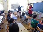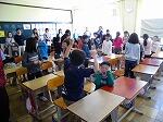 大きな数を英語で伝える活動のあと、ALTのティム先生や教務主任の佐藤先生とじゃんけんゲームをしました。じゃんけんのかけ声は英語です。「ロック」「ペーパー」「シザーズ」のかけ声を何回も繰り返しながら、英語に慣れ親しむことができました。