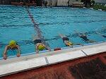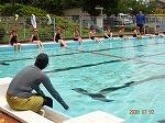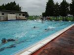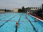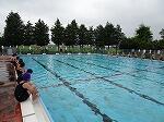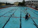 写真ではわかりずらいかもしれませんが、プールサイドには1mごとにテープをはって、間隔を確認できる工夫がしてあります。