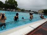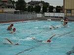 3・4年生は、クロールの手の動きを練習しています。けのびの姿勢からバタ足と手の動きを加え、よく体を伸ばしたフォームで泳げています。5年生は、水慣れで体の力を抜くことを練習しました。仰向けになって力を抜いても沈まないことがよくわかったようです。6年生は、平泳ぎの脚の動きを練習しました。足のつま先の向きを意識して練習に取り組めました。