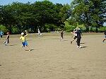 バドミントンクラブは、体育館でペア同士の試合をしました。毎回ちがう人とペアを組んでなかよしを増やそうというめあてをもって活動しています。スポーツクラブは、校庭でサッカーをしました。みんなで一つのボールを追いかけました。