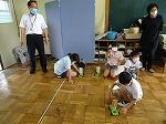 職員室では「どんなお仕事をしていますか。」保健室では「どんな薬がありますか。」校長室では「部屋小はいつからありますか。」など子どもらしい質問がたくさんできました。