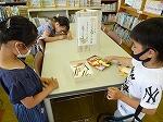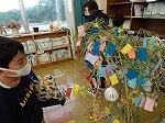明日は年に一度の七夕の日です。図書室では「七夕まつり週間」として、笹の葉が用意され、本を借りに来た子どもたちが、願い事を書けるようにしています。
