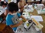 カラーテスターで染め出しをして、赤く染まったところをよく磨きました。歯と歯茎の境目の磨き残しの磨き方、たて磨きを教えてもらいました。親子で一生懸命磨きました。むし歯ゼロをめざしてきちんと歯を磨いてほしいです。