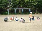 1年生の農園はひまわりやヒャクニチソウ、2年生は野菜畑、3年生はホウセンカ、4年生はヘチマ、5年生はカボチャが大きく育っています。6年生はジャガイモの収穫が終わり、今日は校庭の除草を行いました。梅雨時で曇ってはいましたが、大きな草と格闘していると、汗が噴き出てきます。