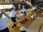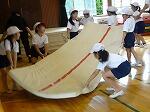 準備運動の後、友達と協力して、マットや跳び箱の準備ができました。重たい用具も力を合わせて運べました。