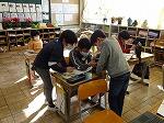 5時間目のことです。廊下を歩いていると、2階あたりから、けんばんハーモニカの演奏が聞こえてきました。曲は聞き覚えのある「喜びの歌」、鼓笛で演奏する曲です。メロディに誘われて近づいてみると、何と3年生でした。みんなで一斉に演奏しているのですが、1月の段階であまりに上手な演奏だったので、話を聞くと冬休みから家で練習をがんばっていた児童もいたそうです。一番難しい「校歌」の演奏も聴かせてくれました。