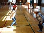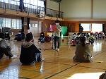 まず、担任の先生がジェスチャーをし、何をしているところが当てるゲームがありました。「踊る」「走る」「歩く」「飛ぶ」「ジャンプ」など、たくさんのジェスチャーがありました。ALTの先生がカードを示し、動作を英語で発音してくださいました。子どもたちもまねをしながら、英語の表現に慣れ親しみました。動作をしながら声に出して、楽しく活動しました。先生役となって子どもたちも英語で命令することもできました。広い体育館で楽しく学習できました。