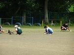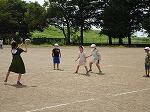 3・4年生は、ボールを打って得点したり、ボールを捕ってアウトにしたりして、ティーボールをしました。小さいボールをバットで打つことはなかなか難しいものです。みんなで点数を数え、チームで声を掛け合ったり、ルールを相談したりして楽しくゲームをしました。