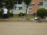 今日は今年度第2回目のPTA奉仕作業を実施いたしました。今回は2、4、6分団と整備・研修委員の皆様にご協力いただきました。日頃、なかなか手が回らない西門道路脇やプール北、校庭東側など、広範囲を作業していただきました。雨上がりの足元の悪い中での作業でしたが、たくさんの方にご協力いただき、きれいに整備できました。