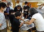 次に、ミニヨシ灯り作りとヨシ紙すきを体験しました。渡良瀬ヨシ愛好会の方々が、マンツーマンで教えてくださいました。「ヨシ灯りのひもを結ぶのが難しかった。」「ヨシから紙ができるなんてすごい。」みんな夢中で楽しく体験しました。