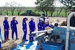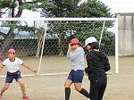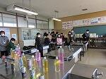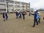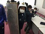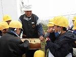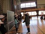続いて、土のう運びを体験したり、消防団の敬礼を教えていただいたりして、校庭での体験学習は終了しました。