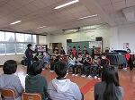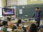 最後に、教室で団長の田熊様に、4年生の質問に答えていただきました。50インチのTVに動画や画像を映しての説明は大変分かりやすかったです。