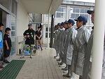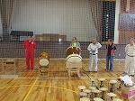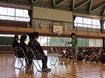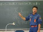 地元部屋地区消防団の皆様、お忙しい中、ゲストティーチァーとしてお出でいただきまして大変ありがとうございました。お陰様で写真のとおり、大勢の先生方の前で実践発表をすることができました。重ねて感謝申し上げます。
