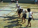この縦割り班の役割は、6年生のリーダーとしての自覚を育てる意味と、日頃あまり遊ぶことの少ない異学年の児童が仲良く遊ぶことにより、縦学年のつながりを強めようとするものです。この縦割りの活動を通して、顔を覚え、兄として姉として、または可愛い弟や妹として仲良く楽しく過ごすことができます。
