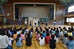 最初は、詩の朗読です。その後、お面を付けた1年生が「おおきなかぶ」の寸劇をしてくれました。何度も何度もくり返される「うんとこしょ どっこいしょ」の掛け声に、会場で見ていた上級生は大笑い。昨年勉強した2年生は、自然と体を動かしながら、一緒に「うんとこしょ どっこいしょ」って言っていました。