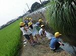 部屋小学校の北にある田んぼを児童26人で作ります。 先生方は渡邉正行様をはじめ計6名の皆様。 児童は「横一列になってまっすぐ丁寧に植えてください。」と先生から指導していただきました。 そんな中、児童からは「田んぼの中に入るのは初めて。田植えもまっすぐ植えれなかったけど楽しかった。収穫が楽しみです。」という感想もありました。