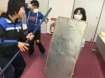 昨年は煙の中での避難が体験できる煙中ハウスで体験学習をしましたので、今年度はそれに続いて、地震が体験できる起震車での防災体験をしました。震度が高くなっていくと、大きな悲鳴が聞こえてきました。