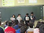 今日のお話は、低学年「こびとのくつや」、中学年「100万回生きたねこ」、高学年「ナホトカの犬」でした。読み聞かせ後、児童からは「とってもおもしろかったです。」「登場人物のようになってみたいと思いました。」などの感想が出されました。この読み聞かせを通して、さらに本に興味をもつ児童が増えてくると良いですね。図書委員会の皆さん、ありがとうございました。