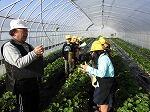 今年も緑川の佐山さんのビニルハウスに行って、イチゴづくりについて勉強してきました。佐山さんのお話ですと、今年は9月10日の台風18号による水害により、イチゴの苗が壊滅状態になってしまったそうです。(当時の写真を見せていただきました。)