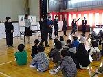 修了式の後、いろいろな表彰をされた子どもたちに賞状を渡しました。書き初めや給食週間の標語、読書の取組で努力した子どもたちを表彰しました。