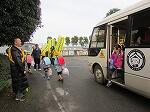 行きは本校隣りの「部屋コミュニティ」で「ふれあいバス」に乗りました。2年生は一人一人100円を払い、乗車券を購入しました。