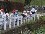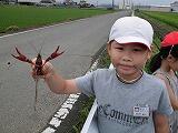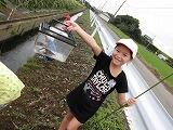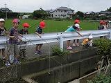 釣る場所は浅く、水が澄んでいてザリガニの姿が見えました。児童は糸の先にイカを結びつけて釣りました。