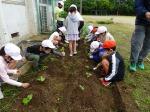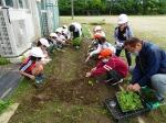 5月18日に学習した『命のあさがお』の種を、学校でも育てています。3・4年生が、朝や休み時間に毎日水やりをしてくれたおかげで、元気な苗に育っています!今日は、大きくなった苗を3年生が花壇に植え替えました。「かわいい」と言いながら大切そうに苗を植えたり、「栄養をしっかりとれるように…」と言いながら雑草を抜いたりしていました。生き物にも植物にも、とっても優しい3年生です!たくさんの種ができて、『命のあさがお』のバトンをつないでいけるといいですね!