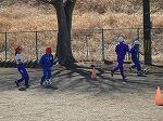 基本練習が終わると、チーム対抗の試合形式の練習になります。1チーム4~5人で編成されているので、パスがよく回ります。どの子も必ずボールに触れ、ゲームに関わることができています。