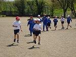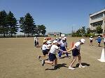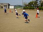 最後は、3人のグループで折り返しリレーで練習をしました。繰り返すたびにタイムが縮んでいくので、子どもたちも意欲を高めていました。
