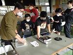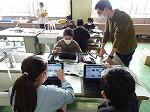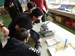 試験管に温度によって色が変わる示温インクを混ぜた水を入れ、試験管の下の方を温めたときと、試験管の上の方を温めたときの2回を実験しました。子どもたちは、温め始めるとタブレットで水の色が変わっていく様子を写真に撮り、実験の様子をまとめました。「実験っておもしろい。」「先生、もう少し時間ください。」「金属の時と比べてどうかな?」みんな真剣に実験を行い、タブレットでまとめ、考察を話し合うことができました。