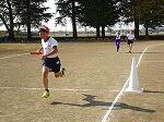 練習では、1・2年は5分間、3・4年は6分間、5・6年は7分間、自分のペースで走ります。どの子どもも一生懸命に練習に取り組むことができました。