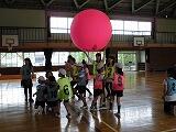 6/25(水)3校時に、3年生の「親子のつどい」を実施しました。下の写真をご覧ください。大きなボールを使って競技をする「キンボール」というスポーツで汗を流しました。