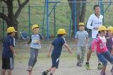 1 6年生と先生がハンター(おに)になり、1年生から5年生までの児童を追いかけます。