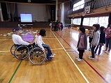 11月12日(水)に、4年生が総合学習「みんなにやさしく」で競技用車イスに乗せていただきました。講師は福祉理解促進キャラバン隊の佐々木さんにお願いいたしました。