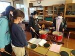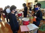 音楽室では、太鼓やシンバルを練習しています。楽譜を見ながらリズムの取り方を教えてくれています。図工室ではベルリラの練習です。6年生がお手本を示したり、一緒に演奏したりしてくれています。
