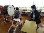 次に、指揮、ベルリラや太鼓、シンバル、カラーガードの旗を6年生が5年生に手渡しました。引き継いだ5年生の表情が引き締まっていました。