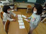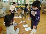 工夫して作ったけん玉やコマ、やじろべえなどで遊んだり、まと入れやおみくじを楽しんだりできました。自分たちのコーナーでの遊び方がきちんと考えてあり、説明を書いた紙を読めばわかるようになっていました。説明する力も発揮されていました。