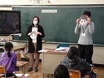 教室に入る時、「失礼します。」「お願いします。」とあいさつがしっかりできました。クラブ長や担当の先生から説明を聞き、目が輝いていました。一緒に体験させてもらったり、作ったボンボンをプレゼントしてもらったりして大満足でした。
