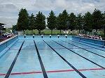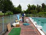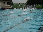 写真ではわかりずらいかもしれませんが、プールサイドには1mごとにテープをはって、間隔を確認できる工夫がしてあります。