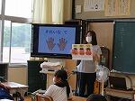 今日は、1年生が保健室の篠塚先生から手洗いの仕方を教わりました。モニターに映る説明をよく聞いて、一人一人が手指の間まできれいにすることを教わりました。実際に水道で教わったことを生かしてきれいに手を洗うことができました。